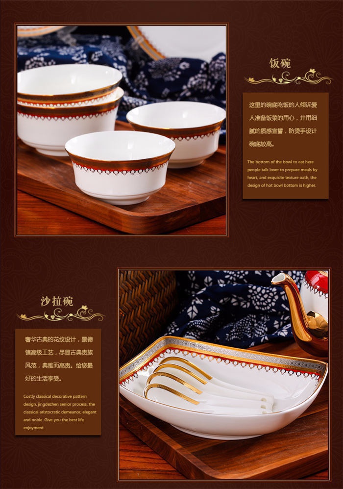 62頭浮雕金,一個湯煲,一個飯勺,一個大湯勺,一個調(diào)料碟,一個牙簽筒,一個長方盤,一個魚盤,一個十寸大圓盤,四個面碗,十個飯碗,十個大骨碟,十個八寸盤,十個調(diào)羹,十個筷子架