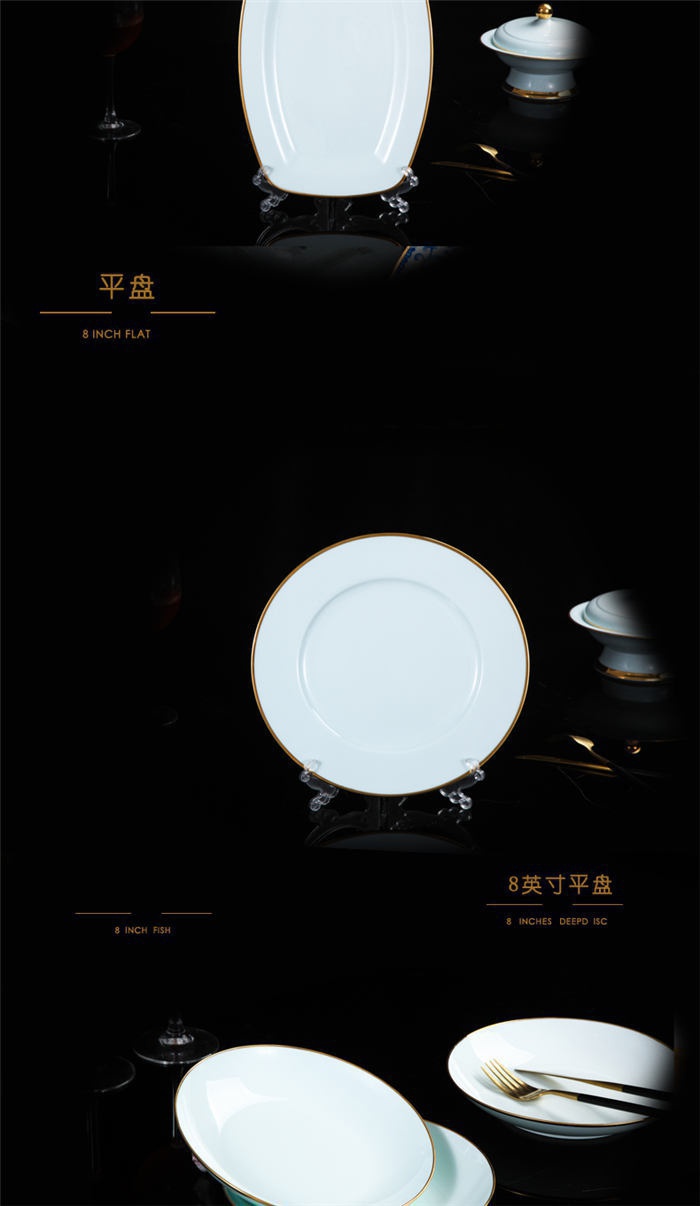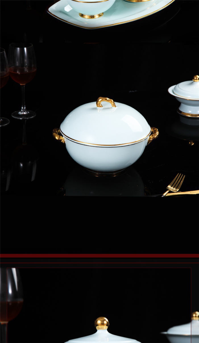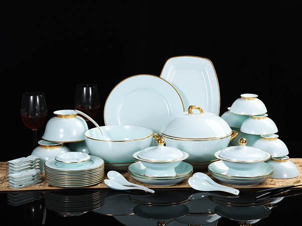 碗十個,骨盤十個,盤子十個,小勺十個,筷子架十個,面碗四個,燉盅二個,湯煲一個,大湯碗一個,飯勺一個,煙灰缸一個,魚盤一塊,十寸大 圓盤一塊。