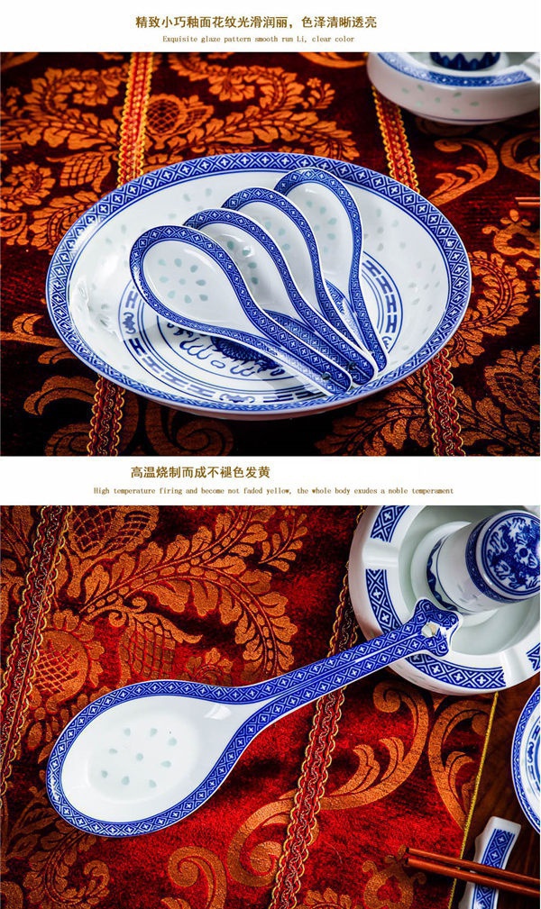 56頭高白龍的青花玲瓏餐具,一個湯煲,一個魚盤,一個十寸圓盤,一個飯勺,一個煙缸,一個牙簽筒,十個4.5寸飯碗,十個三寸碟,十個八寸盤,十個調(diào)羹,十個筷子架。56頭高白龍的青花玲瓏餐具,一個湯煲,一個魚盤,一個十寸圓盤,一個飯勺,一個煙缸,一個牙簽筒,十個4.5寸飯碗,十個三寸碟,十個八寸盤,十個調(diào)羹,十個筷子架。